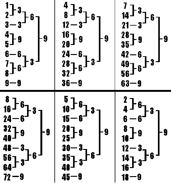 you total the below numbers it comes to either 3, 6 or 9.